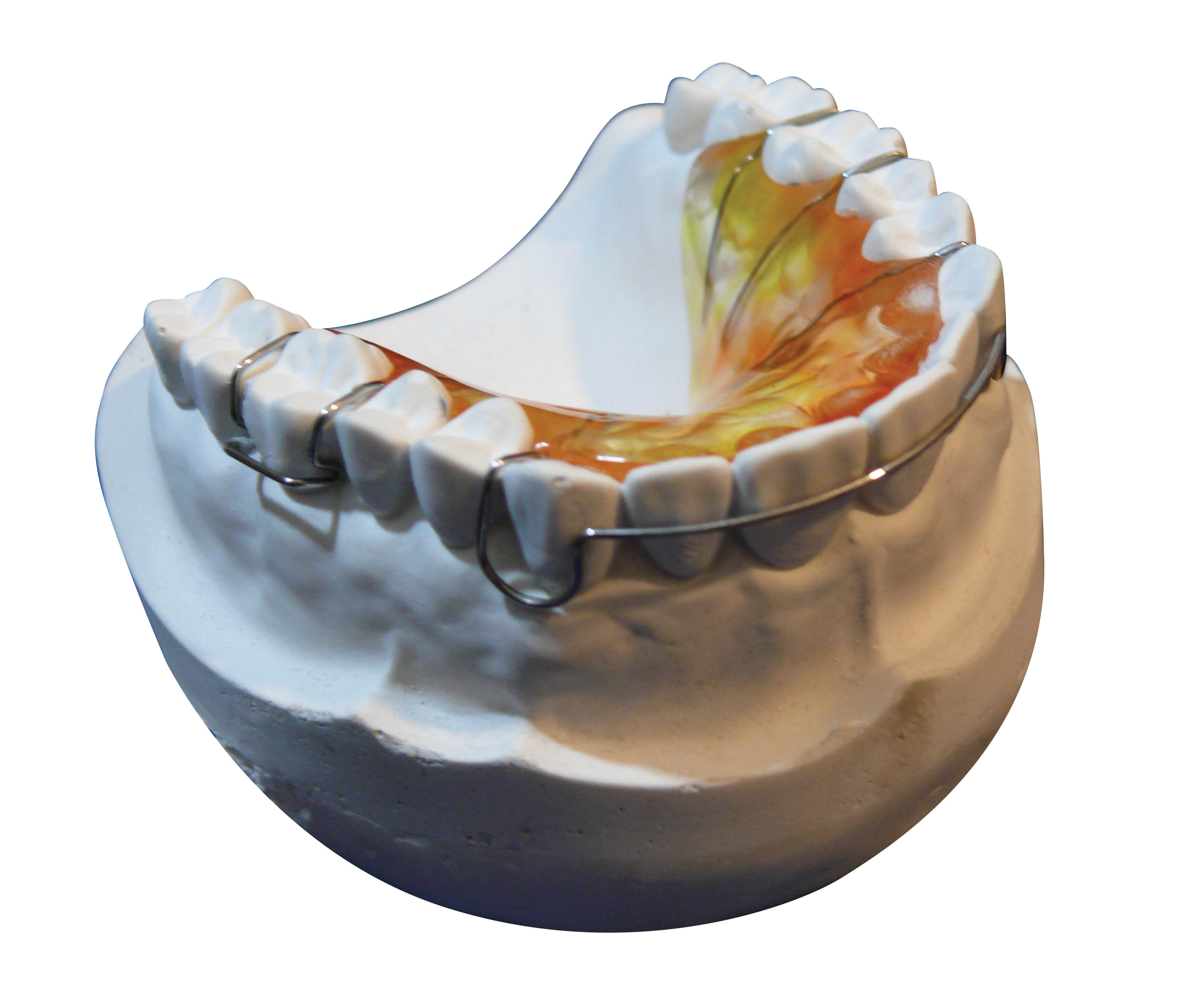 یک مدل متداول ولی قدیمی پلاک آکریلی Hawley میباشد (شکل 66-4). در حال حاضر فقط بعد از درمانهای Expansion از این پلاک استفاده میشود.