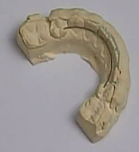 مدل دیگر نگهدارنده، سیمهای Twisted با قطر 0.015 است. بعد از پرداخت دندانها یک قالب آلژینات گرفته و کست بیمار را تهیه میکنید. روی کست سیم 0.015 Twisted را فرم میدهید (شکل 69-4). اگر فکر میکنید زمان زیادی برای این کار لازم است و احتمال برگشت نامرتبی وجود دارد قالب آلژینات را در مرحله Settling تهیه کنید. حال سیم را آماده کنید تا در جلسهای که براکتها را خارج میکنید در دسترس باشد. در این موقع چون براکت روی دندانها وجود دارد و احتمال پاره شدن آلژینات است، لذا قطعهای موم روی براکتها بگذارید (شکل 70-4) و بعد قالب گیری کنید.