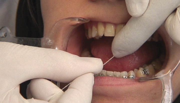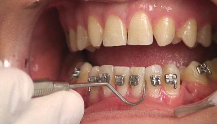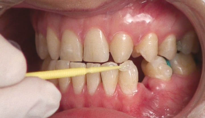 شکل 78-1: تمیز کردن اضافه رزین کیور شده از بین دندانها