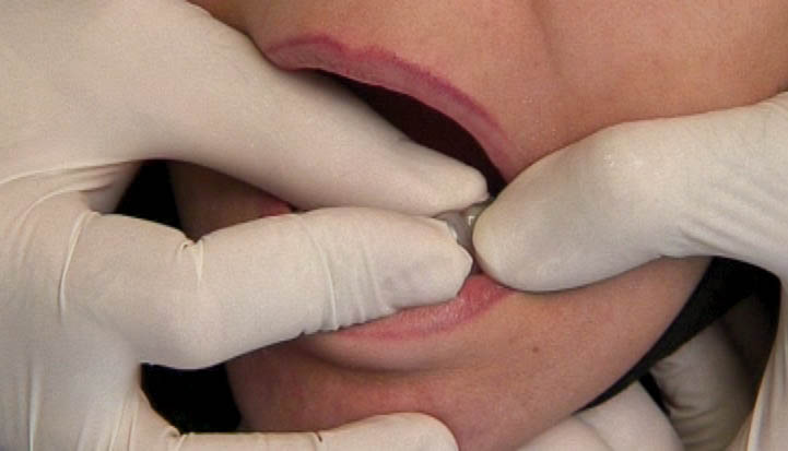 شکل 77-1: تطابق تری روی دندانها و فشار اکلوزالی و باکالی برای Setting اولیه