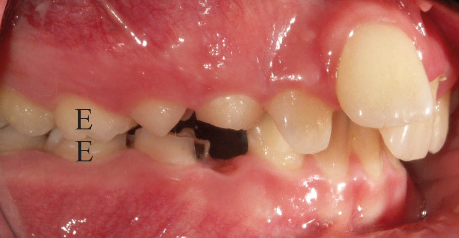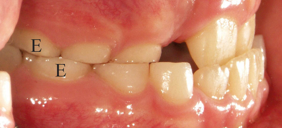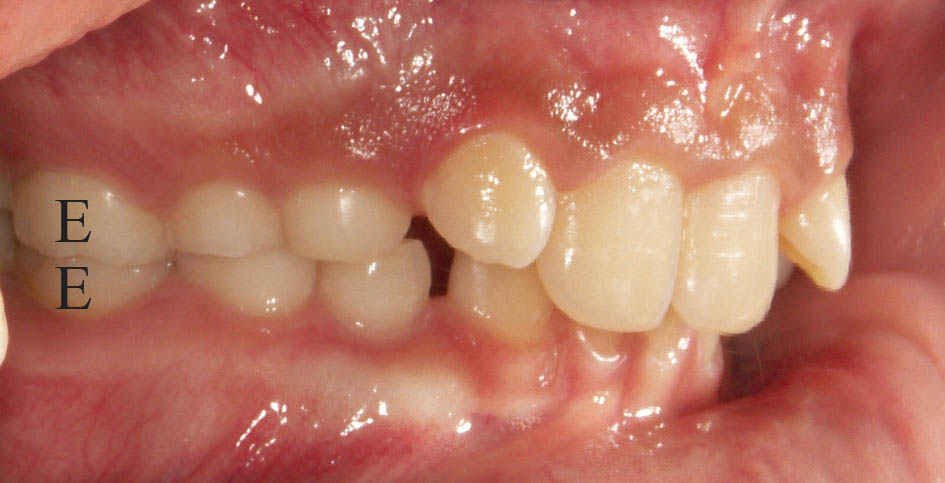 شکل 21-5: دیستال دندانهای E بالا و پائین در یک راستا هستند