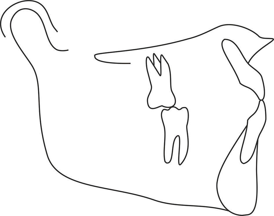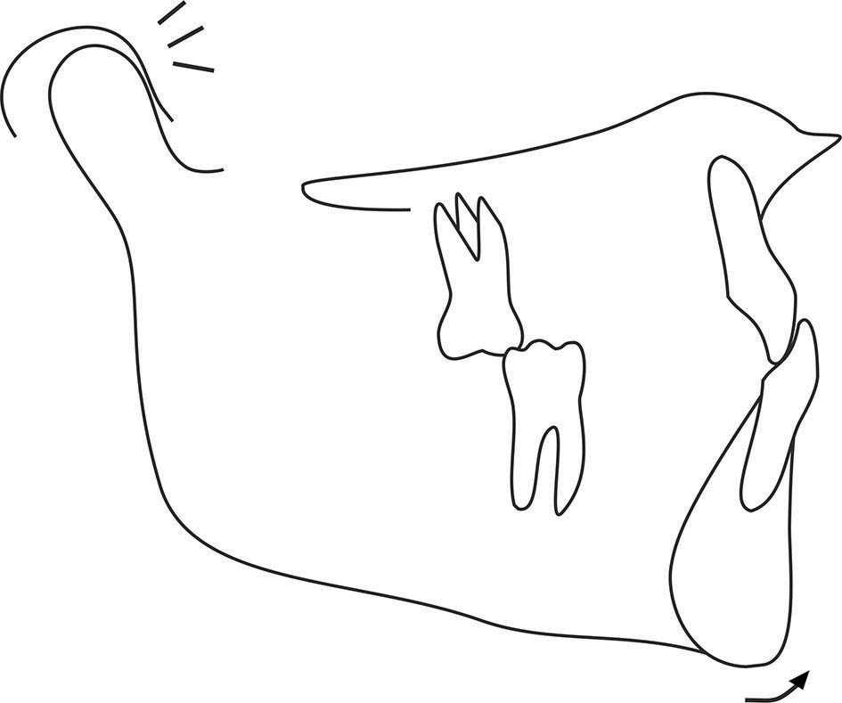 شکل 19-5: دیستال E پائین جلوتر از دیستال E بالاست، لذا بیمار در آینده کلاسIII میشود