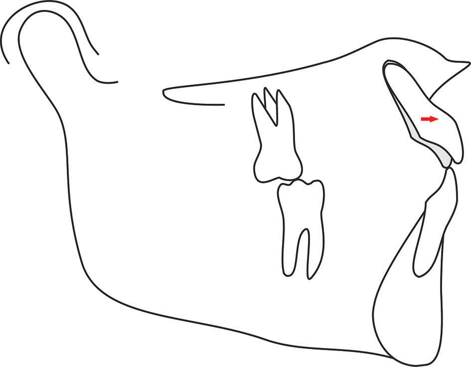 شکل 25-5: جابجایی قدامی مندیبل جهت رسیدن به حداکثر تماس دندانی(CO)