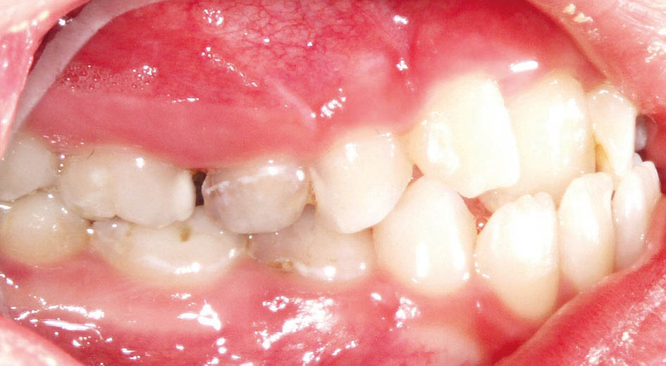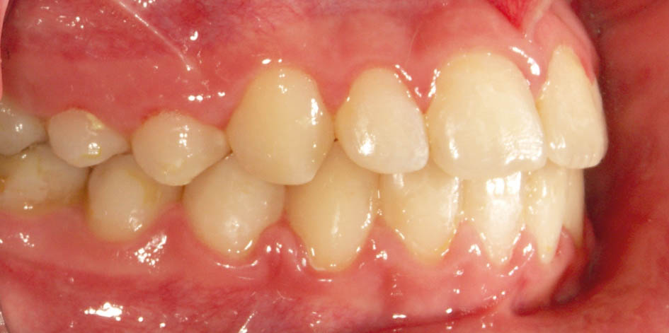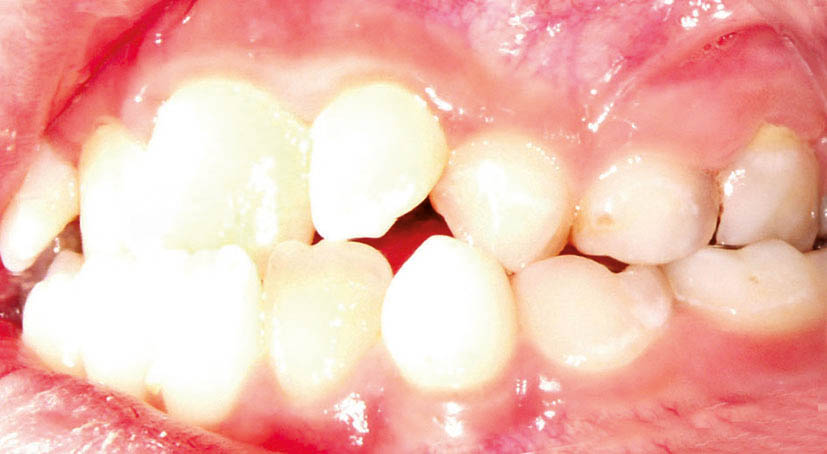 شکل 43-5: تکمیل رویش دندانهای قدامی با اکلوژن کلاسI در سمت راست