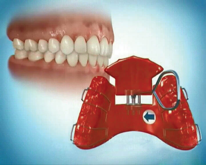 چسباندن براکتهای قدامی و گذاشتن سیم منجر به پروترود شدن دندانهای قدامی و اصلاح کراس بایت قدامی میشود. با پروترود شدن انسیزورهای بالا انحراف قدامی مندیبل هم درمان میشود. اورجتی که بدین صورت بدست میآید قسمتی به خاطر پروترود شدن انسیزورهای بالا و قسمتی به خاطر عقب رفتن مندیبل است.