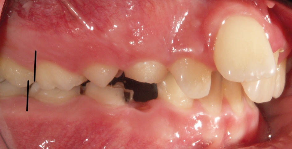 شکل 78-5: بیمار یک کاسپ کامل کلاسII و دیپ بایت شدید است.