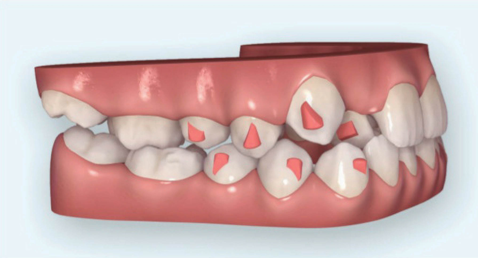 اکسپنشن برای چنین بیماری مفید است. البته در زمان دادن اکسپنشن باید به این موضوع فکر کنید که چگونه باید دندانها را اکسپنشن داد. با الاینرهای شفاف فقط میشود تاج دندانهای خلفی را باکالی نمود. در بیماری که تاجها پالاتالی باشند اینکار عالی میشود.