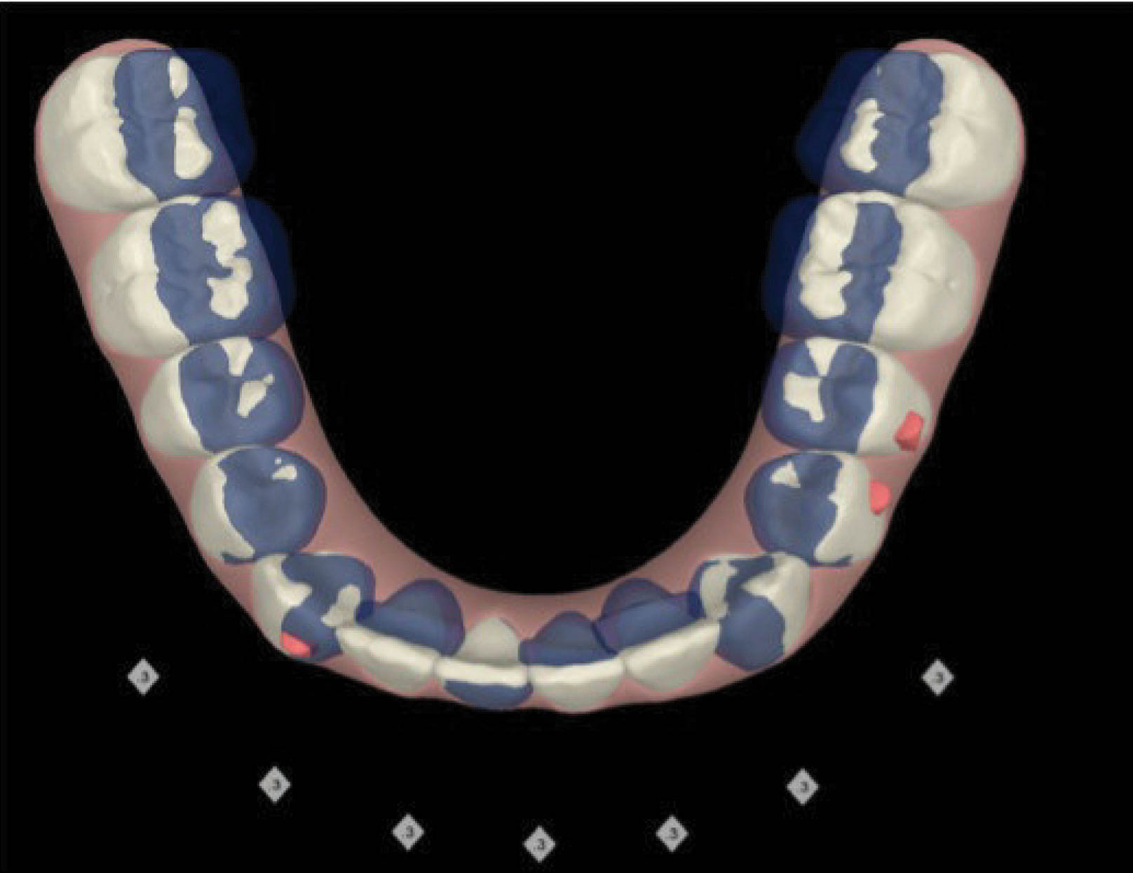 نکته دوم: همیشه مقداری کمتر استریپ نمایید. اگر قرار است 0.3mm استریپ کنید، بجای آن 0.2mm استریپ کنید. در جلسات بعدی اگه کنتاکتها محکم نیستند که کماکان از الاینر باید استفاده کند ولی اگر کنتاکتها خیلی محکم شدند، آن موقع میتوانید کمی استریپ کنید تا کنتاکت تماس بهتری پیدا کند. این نوع کار کردن شانس باز ماندن کنتاکت در انتهای درمان را کم میکند.