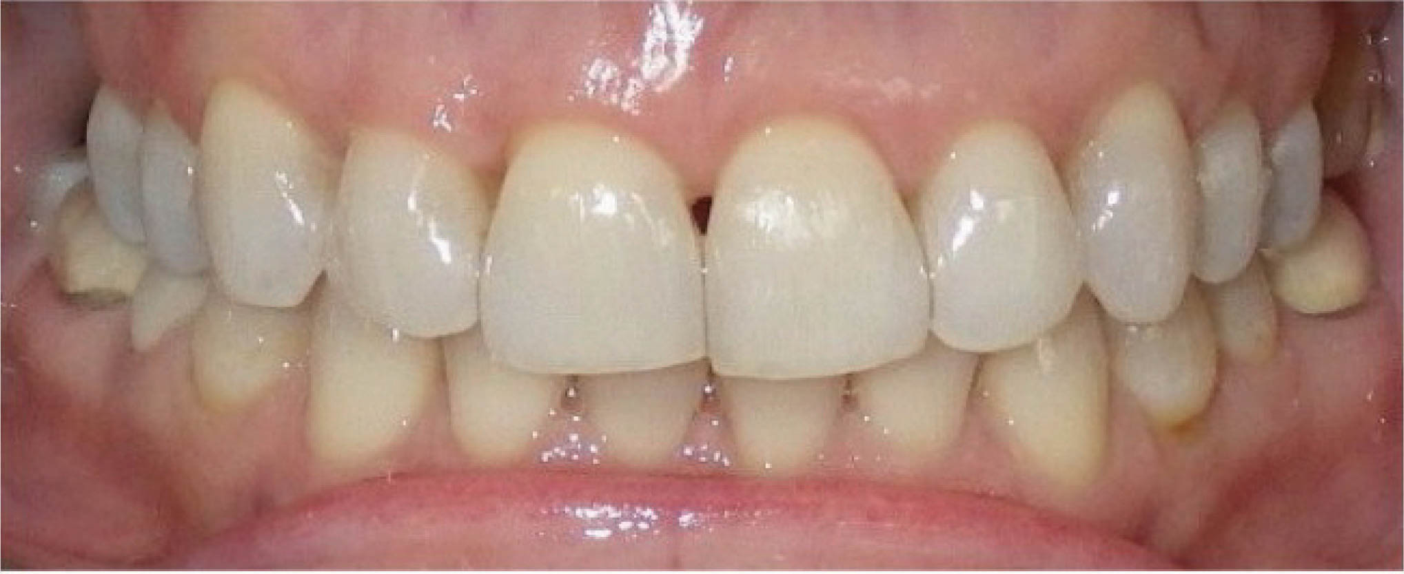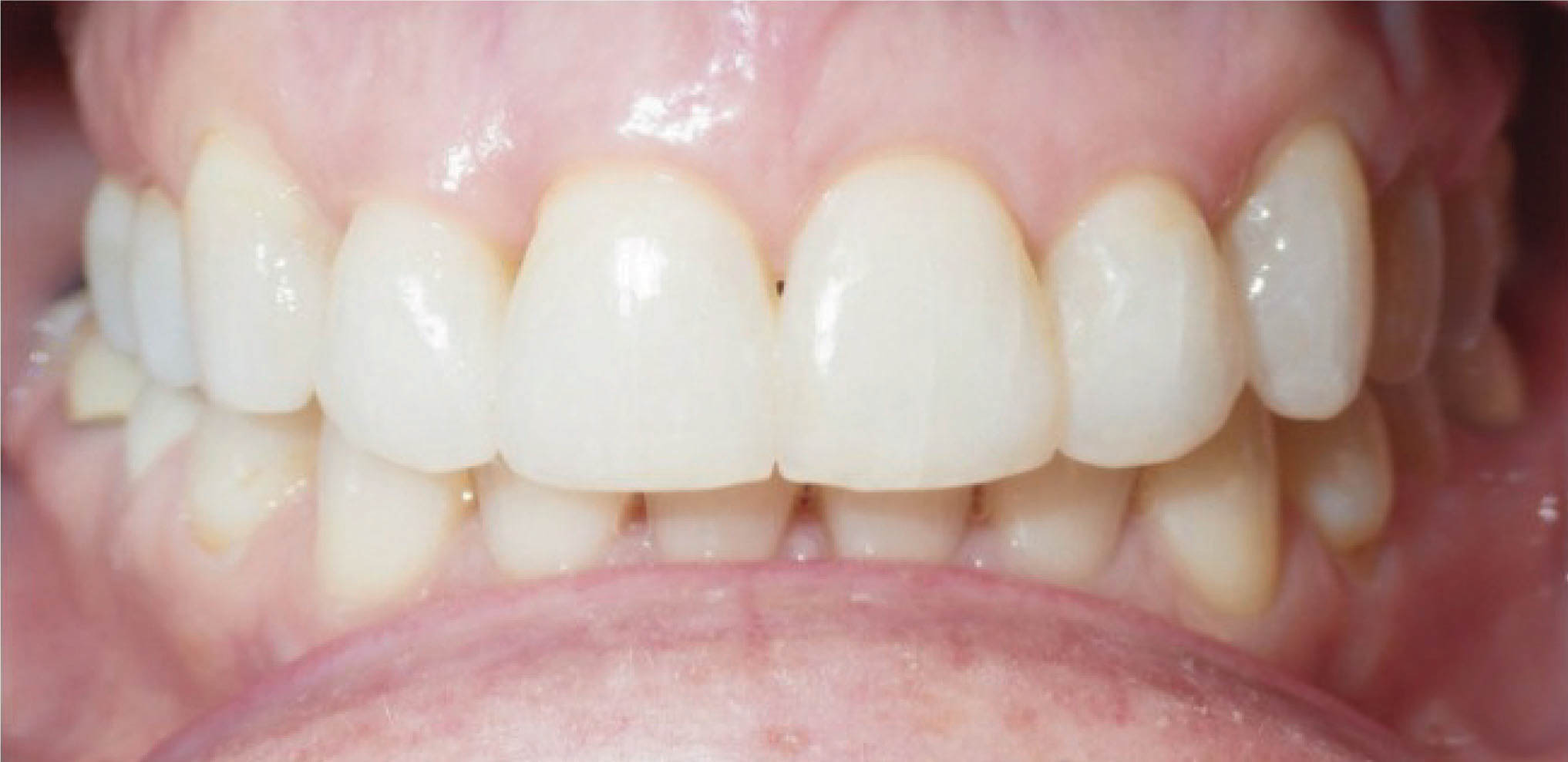 با استریپ میتوان مثلث تاریک بین دندانی را از بین برد. این حالت در بیمارانی که تحلیل لثه دارند یا فرم تاج مثلثی است دیده میشود. این بیمار (شکل 152-6) از مثلث تاریکی که بین سانترالهای بالا بود ناراضی بود.
