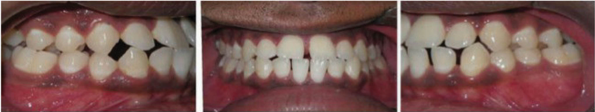 سومین کاربرد استریپ اصلاح اورجت در بیماران کلاسII یا III است. اکلوژن بیمار شکل 147-6 کلاسIII است. در این بیمار از پایین استریپ کردیم تا با حرکت خلفی قدامیها به اورجت مطلوب و رابطه کانینی کلاسI برسیم. البته در این بیمار از الاستیک کلاسIII هم استفاده گردیده است. استریپ خلفی در هر دو سمت انجام گردید.