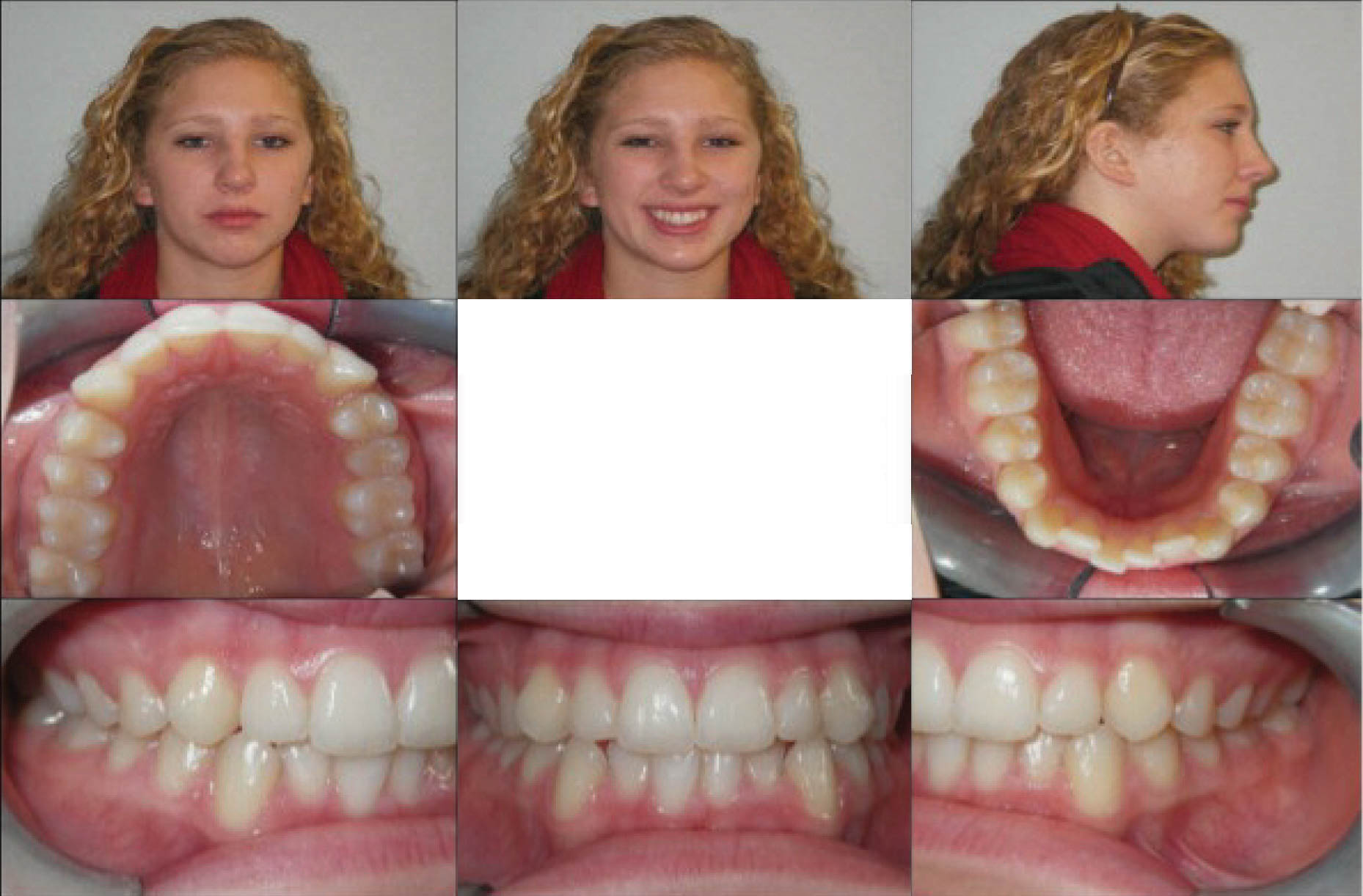 در طرح درمان کامپیوتری (شکل 153-6) استریپ بالا انجام گرفت تا با عقب کشیدن انسیزورها به ظاهر زیباتری برسیم. نتیجه درمان در شکل 154-6 مشخص است.