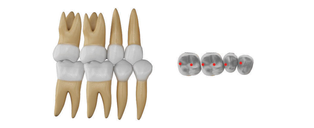 شکل 84-1: پرمولرهای بالا نیم میلیمتر مزیالیتر چسبانده میشود.