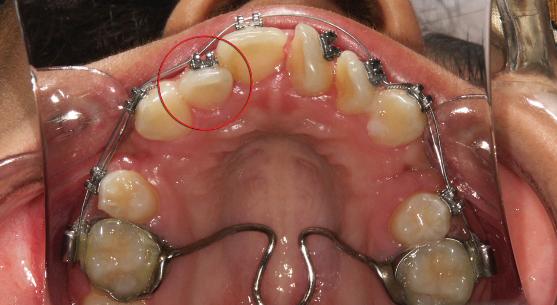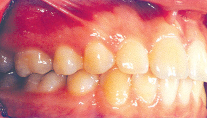 شکل 89-1: فقدان دندان لترال، لذا کانین به جای لترال قرار گرفته و پرمولر اول حکم کانین را دارد.
