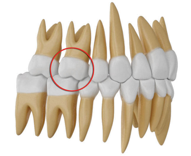 4. در بیماران دیپ بایت کرواسپی شدید است. این کرو از مولر دوم پائین شروع تا به انسیزورها میرسد، لذا برای صاف کردن آن باید حتماً دندان مولر دوم پائین را هم بچسبانید.