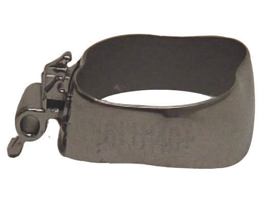 تیوب weldable: این تیوب مش ندارند و روی حلقههایی که band نامیده میشوند خال جوش میخورند ( شکل 45-1). این تیوبها دارای استحکام بیشتری هستند و کمتر از دندان جدا میشوند. از آنجایی که سایز دندانها با هم فرق میکند، لذا باید سایزهای مختلفی از این بندها را (شکل 46-1) در مطب داشته باشید. این بند و تیوبها برای فک بالا و پائین، سمت چپ و راست با هم فرق دارند پس برای هر سمت باید سایزهای مختلفی داشته باشید تا در زمان کار بهترین سایز را برای دندان انتخاب کنید.