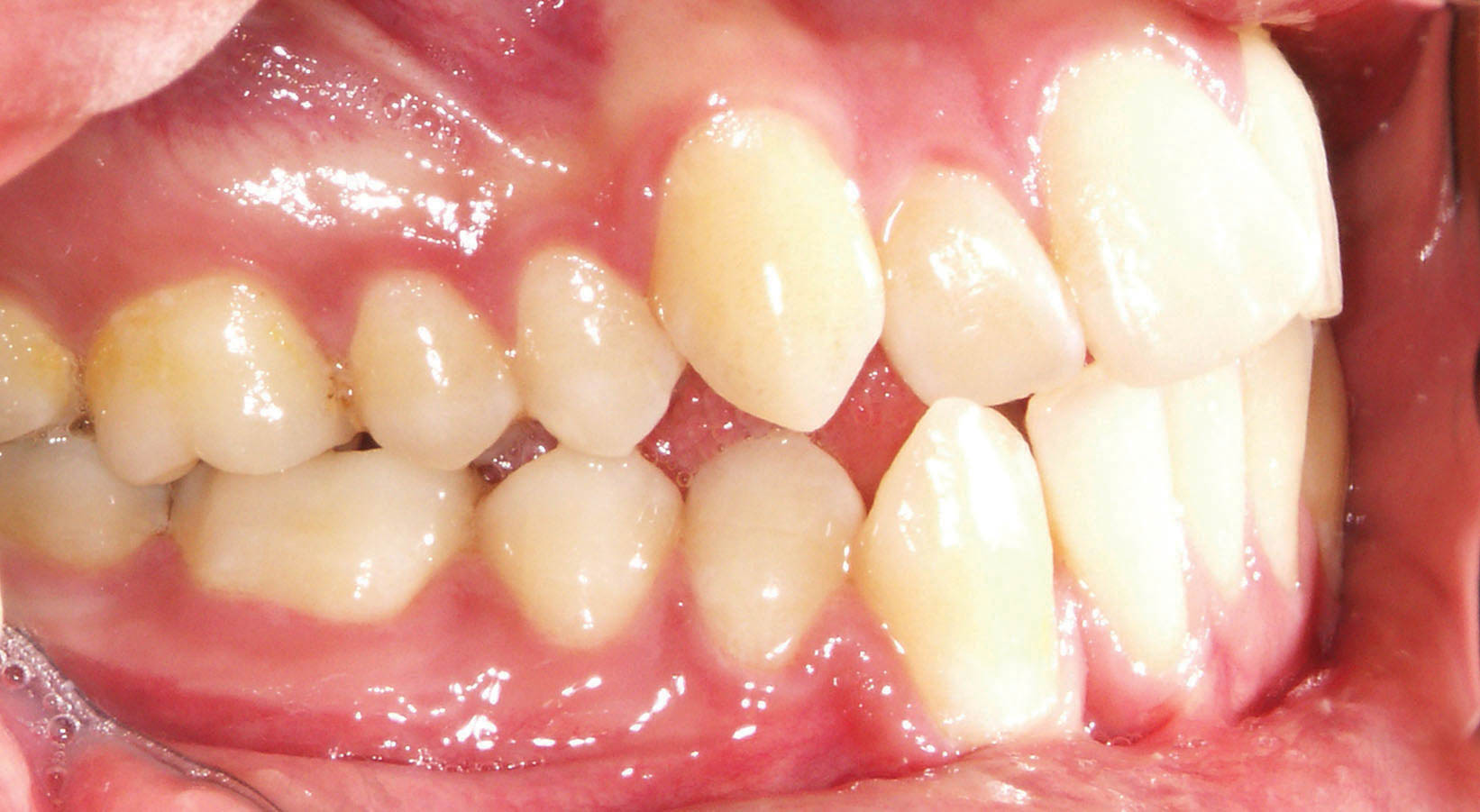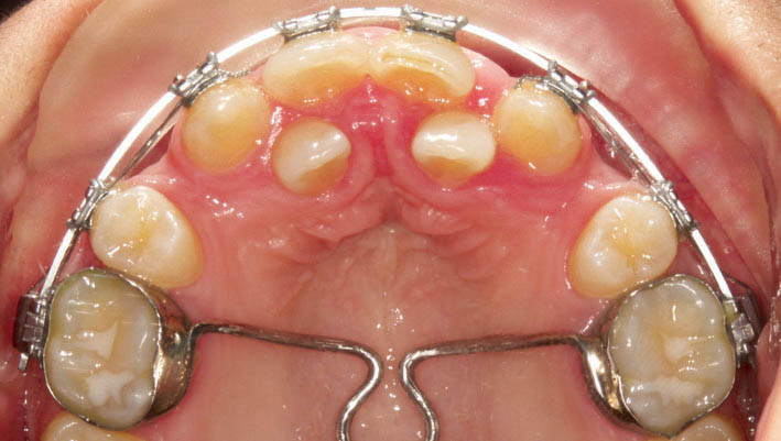 شکل 111-1: در زمان تحلیل لثه باید از براکت کانین با تورک مثبت استفاده نمود.