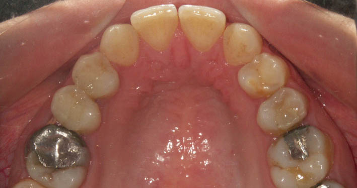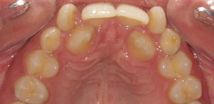نکته 1: شاید بیمار شما در کودکی با پلاک متحرک و یک فنر درمان شده باشد و دندان لترال بالا به درون قوس آمده باشد ولی ریشه هنوز از قوس خیلی دور است. در این مورد هم باید براکت آن را برعکس بچسبانید (گرچه تاج درون قوس قرار گرفته است).