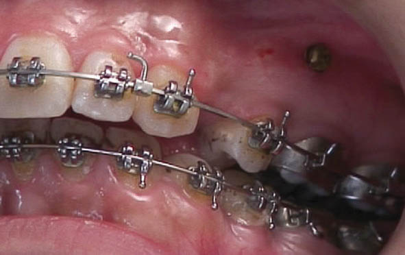 ماه بعد از آن سیم شانزده در بیست و پنج حرارتی میگذاریم تا شیار براکتها را مرتبتر نماید و بعد از 6 هفته میتوانیم سیم سیم شانزده در بیست و پنج استیل یا بتاتایتانیوم را قرار دهیم. این سیم تا انتهای درمان میماند تا فضا بسته و به اکلوژن کلاس یک کانینی برسیم.