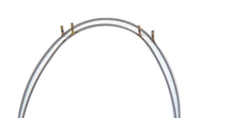 سیمهای استیل مستطیلی دارای دو عدد هوک هستند (شکل 118-1). این هوکها قطعهای سیم برنجی به ضخامت شش دهم میلیمتر است. قبل از جا گذاشتن آرچوایر بایستی سیم برنجی را از وسط به سمت مزیال خم کنیم. فاصله هوکها در سیم 0.019*0.025 استیل متنوع است و بین 22 الی44 میلیمتر میباشد. پرمصرفترین آن شامل: