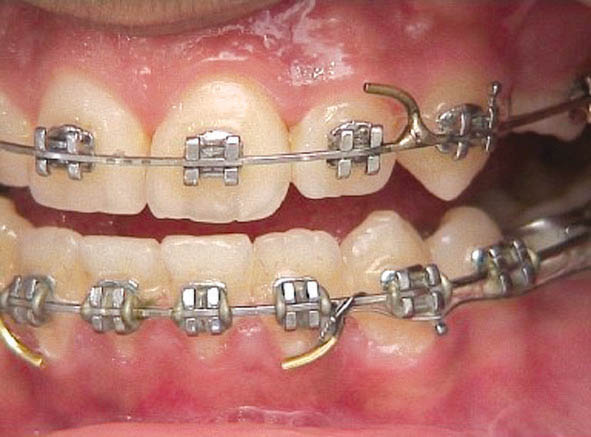 شکل 119-1: بهتر است هوک به دیستال براکت لترال بچسبد تا مانع ایجاد فضا بین انسیزورها گردد.