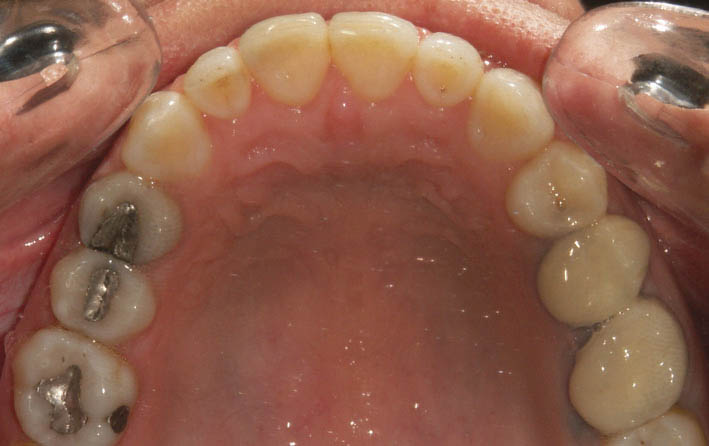 شکل 135-1: لترال چپ بالا در پالاتال است، لذا میدلاین به آن سمت Off شده، پس باید کانین راست بالا را از لترال راست جدا کنید تا با ایجاد فضا برای لترال پالاتالی میدلاین هم On شود.