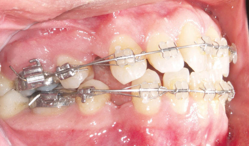 هر ماه laceback (سیم لیگاچور 0.010) محکم میشود تا بعد از مدتی زاویه ریشه کانین اصلاح شود و به tip صحیح برسد. بعد از این زمان با سفت کردن laceback کل دندان کانین دیستاله میشود. تقریباً در هر ماه بین نیم تا یک میلیمتر به عقب میرود و جا باز میشود تا کرادینگ انسیزورها برطرف شود.