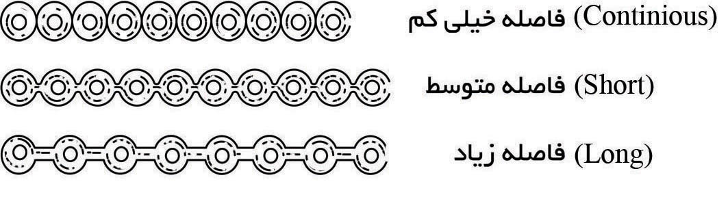 فاصله بین این حلقهها متغیر است و به انواع continious (فاصله خیلی کم) و short (کوتاه) و long (فاصله خیلی زیاد) تولید میشود (شکل 151-1).