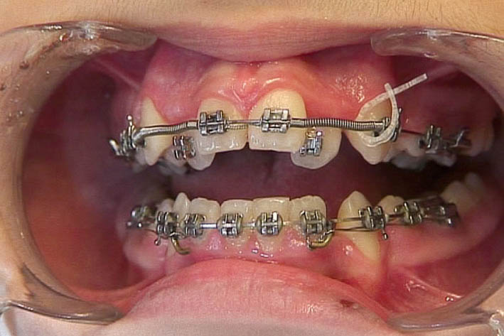 ضمناً حتماً باید کانینهای دو طرف با سیم لیگاچور بسته شود تا از چرخش آنها جلوگیری گردد. آرچوایر هم 0.020 استیل باشد تا جلوی tilt دیستالی یا مزیالی دندانها گرفته شود.