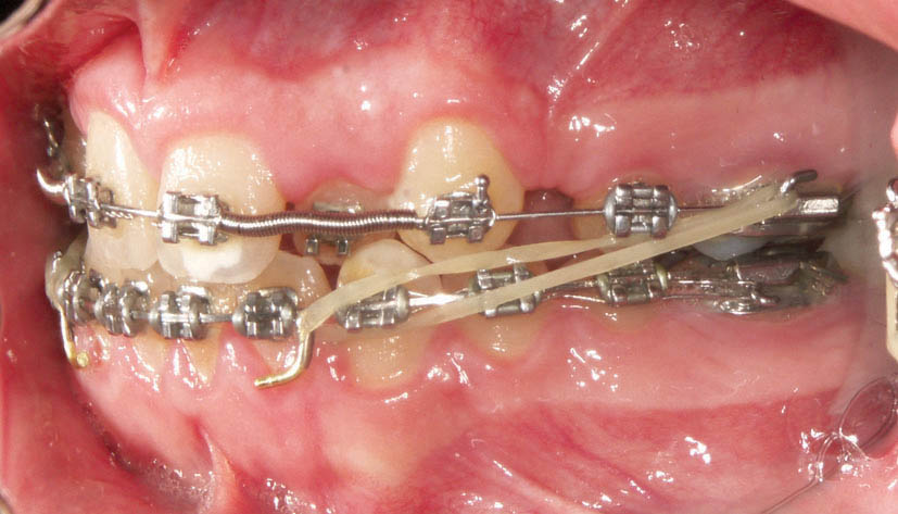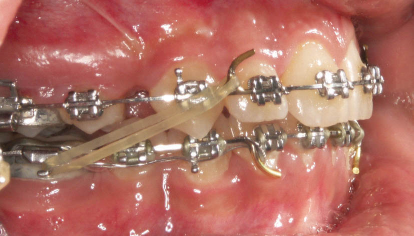الاستیك كلاسII از هوك تیوب دندان 6 پایین به هوك آرچ وایر بالا متصل میگردد (شکل 178-1) و الاستیك كلاسIII از هوك تیوب دندان 6 بالا به هوك آرچ وایر پایین متصل میشود (شکل 179-1).