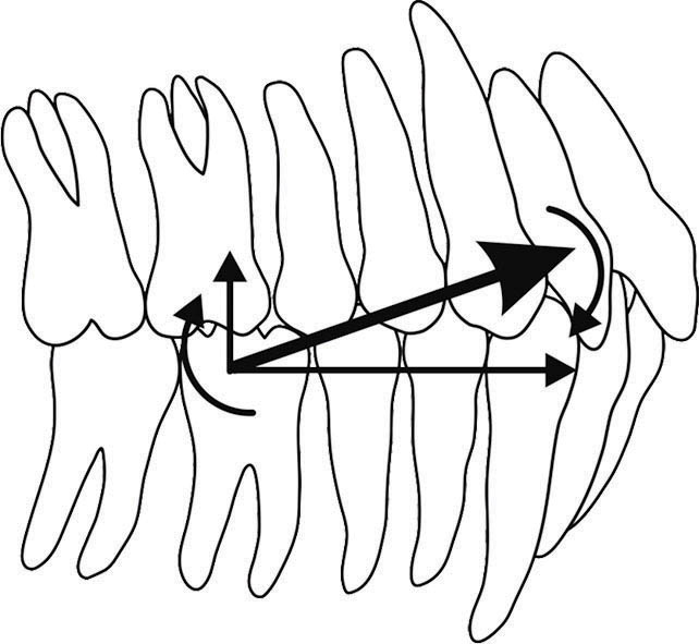 شکل 181-1: چرخش پلن اکلوزال در جهت عقربههای ساعت به خاطر مصرف الاستیک کلاسII.