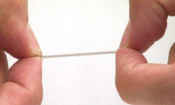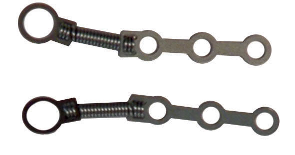 مدل ابتکاری جالبی است. با خرید یک مدل شما طولهای مختلفی از فنر را خواهید داشت (شکل 194-1). با یک فنر کار سه فنر را انجام میدهید. فنرهای نی تی را تا دو و نیم برابر طول خودشان میتوانید بکشید، البته توصیه بر این است که بیشتر از دو برابر کشیده نشوند چون احتمال خراب شدن آن وجود دارد، مثلاً اگر فاصله هوکها 18mm است مدل 9mm را تهیه نمائید. این مدل دارای دو لوپ اضافه است که هر کدام 4mm با قبلی فاصله دارد، لذا اگر فاصله دو هوک بجای 18mm، 22 یا 26 میلیمتر هم که باشد میتوانید از این فنر استفاده نمائید و لوپهای دورتر را درگیر هوک کنید. به مرور که فضا بسته میشود بهتر است که لوپهای اضافه را با کاتر قطع کنید و از لوپهای کوتاهتر استفاده نمائید.