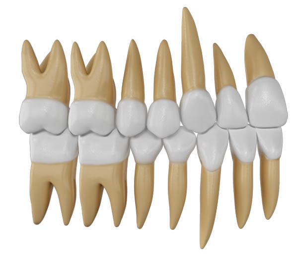 : طبق شکل 1-2 هر دندان در مقابل یک دندان قرار میگیرد. وقتی از پالاتال نگاه میکنید (شکل 2-2)، کاسپهای پالاتالی پرمولرهای بالا با دیستال فوسای پرمولرهای پایین تماس دارند، لذا به این اکلوژن کاسپ به فوسا هم میگویند (شکل 3-2). نام دیگر آن «اکلوژن دندان به دندان» است.