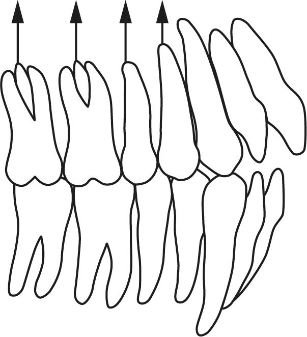 این نیروی اینترود کننده اگر فقط در یک سمت باکال یا پالاتال باشد آن سمت حرکت بیشتری میکند و منجر به از بین رفتن تورک دندانهای خلفی میشود.
