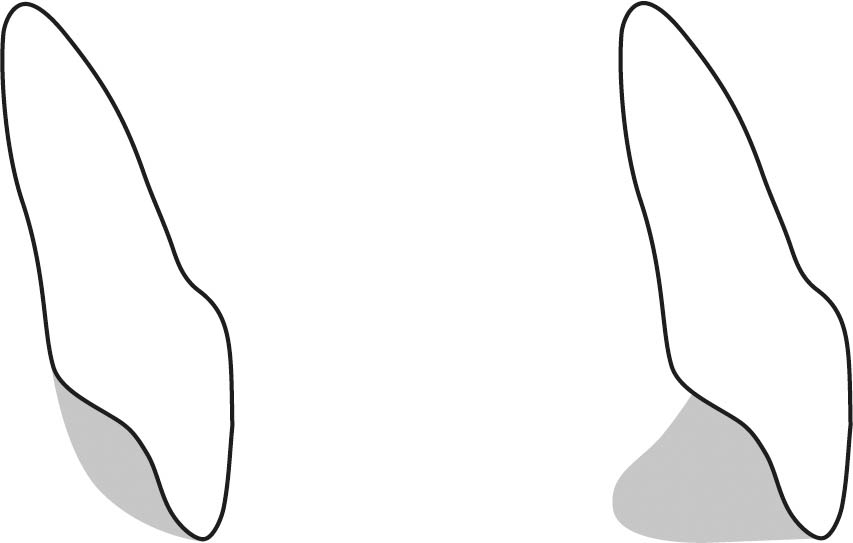 نکته: بعضی مواقع در حین درمان طول تاج بعضی دندانها کوتاه میشود که بخاطر هیپرپلازی لثه است. این هیپرپلازی بخاطر بهداشت ضعیف بیمار یا نفوذ کامپوزیت به فضای لثه رخ میدهد. این کوتاه دیده شدن تاج باعث بروز تفکر که طول تاج کلینیکی کوتاه شده نشود.