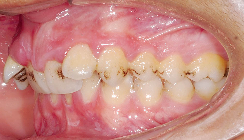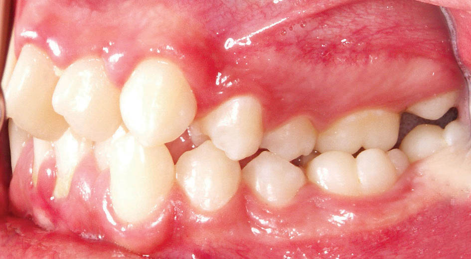 وقتی خلفیهای بالا کاملاً در باکال یا لینگوال خلفیهای پایین قرار گیرد گفته میشود (شکل 76-3).