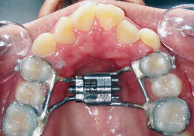 این پیچ به کمک این چهار بند روی دندانهای قوس بالا سمان میشود (شکل 80-3).