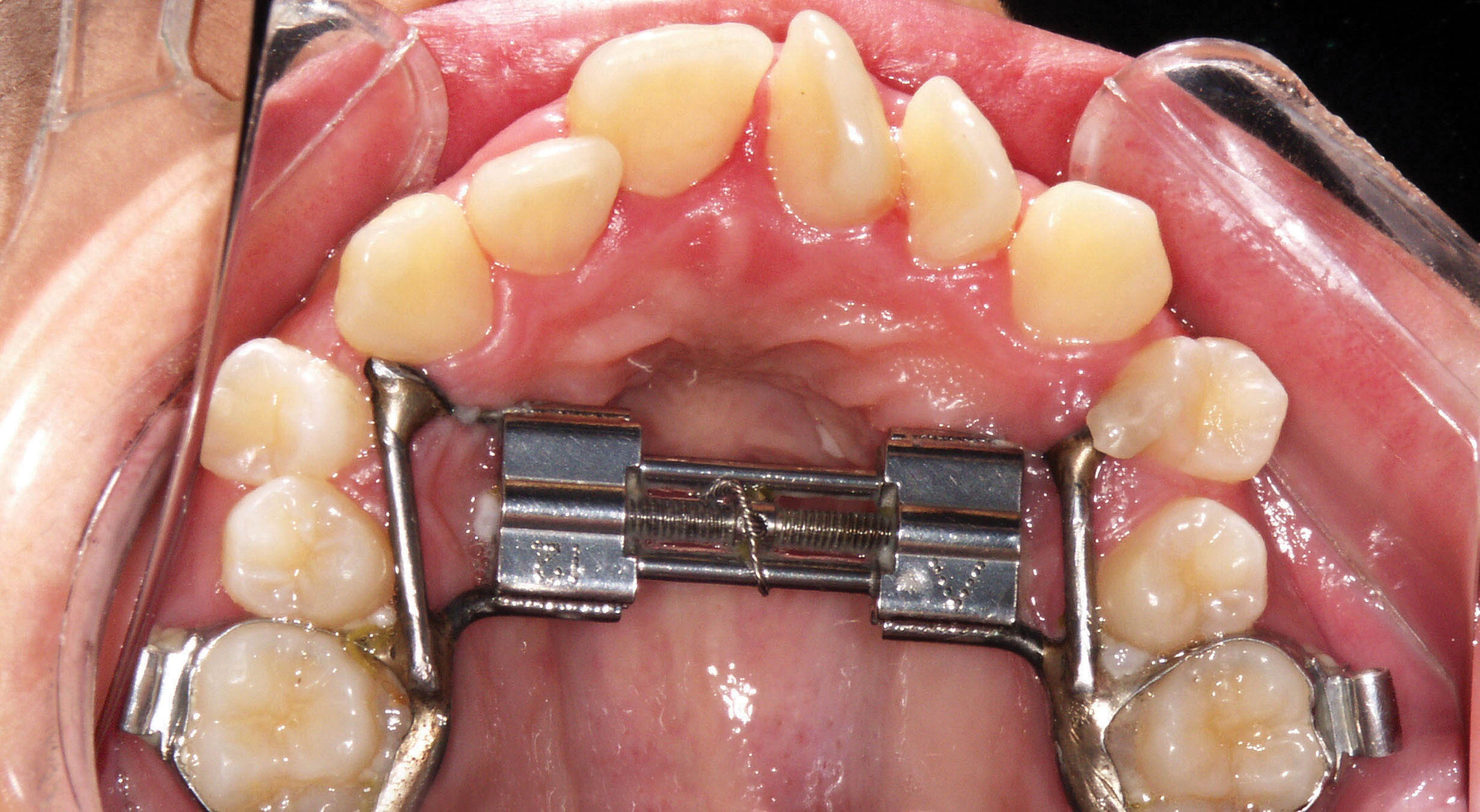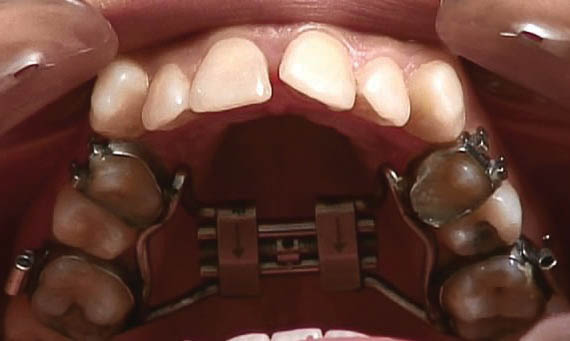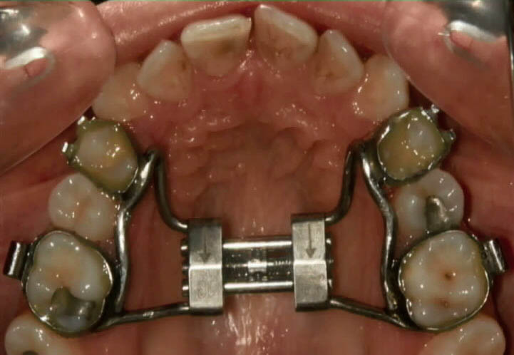 والدین باید روزی دو نوبت پیچ را سفت کنند تا نیروی زیادی از طریق دندانها بر روی قوس فکی اعمال شود. نیروی ملایم باعث حرکت باکالی دندانهای خلفی میشود اما نیرو بسیار زیاد یک بافت هیالینیزه در اطراف ریشه دندانها تشکیل میدهد. این بافت مانع حرکت باکالی دندانها میشود، لذا تمام نیروها از طریق دندانها به سوچور فک بالا منتقل میشود. سوچور تا حدی میتواند نیروها را تحمل کند اما معمولاً شاهد آن هستیم که بعد از حدود هفت روز (روزی دو نوبت) سوچور باز میشود. دیدن دیاستم بین سانترالهای بالا تاییدی بر باز شدن سوچور است (شکل 84-3).