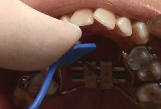 بعد از سفت شدن سمان گلاس اینومر به والدین نحوه سفت کردن پیچ را آموزش دهید و بخواهید در حضور شما پیچ را سه الی چهار مرتبه سفت کنند. باید آچار مربوطه را درون سوراخ پیچ قرار بدهند (شکل 83-3) و به سمت دیستال بچرخانند تا سوراخ بعدی مشخص شود. این یک مرتبه میشود. هر چهار مرتبه منجر به چرخیدن یک دور کامل پیچ میشود. بسته به کارخانه سازنده یک دور کامل پیچ قوس فکی را 0.8mm یا 1mm باز میکند. بعد از آموزش کامل، والدین روزی دو مرتبه پیچ را در منزل سفت میکنند. جلسه بعدی ویزیت هفته بعد خواهد بود.