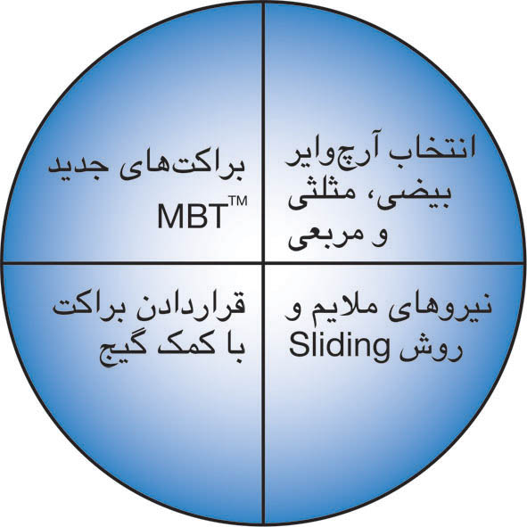 در MBT علاوه بر اصول اکلوژنی آقای Roth به نیرو ملایم و ممتد، تنوع آرچوایر برای کاهش ریلاپس و محل نصب براکت اهمیت بسیار زیادی میدهند (شکل 67-1)