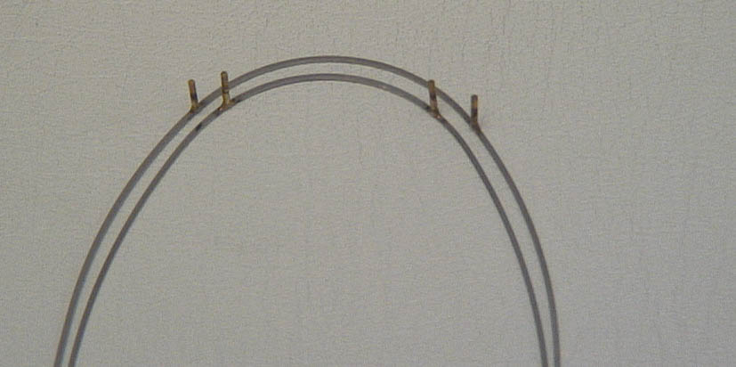 شکل 16-4: دو عدد هوک برنجی برروی سیمهای استیل لحیم شده است. سیم خارجی برای فک بالا و سیم درونی برای فک پائین است.
